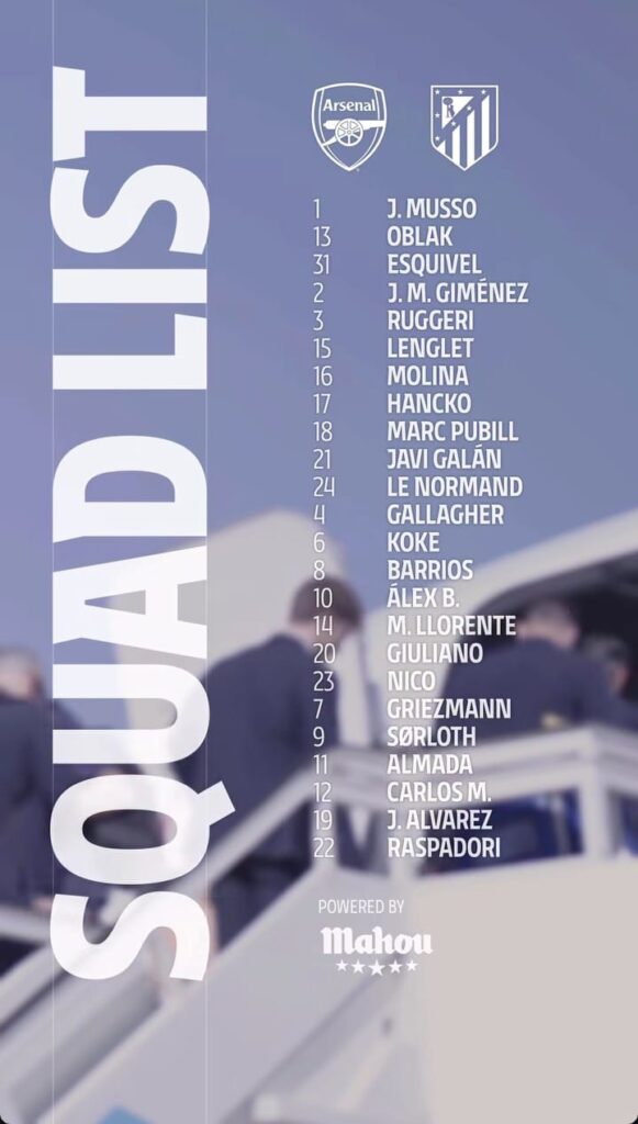 Los rojiblancos viajarán a Londres y ya se ha comunicado la lista de los convocados para el próximo partido con dos novedades. La vuelta de Lenglet a la lista tras ser baja por sanción contra el Osasuna en Liga y la continua lesión de Cardoso, que a día de hoy se sigue sin saber cuándo regresará a los terrenos de juego.