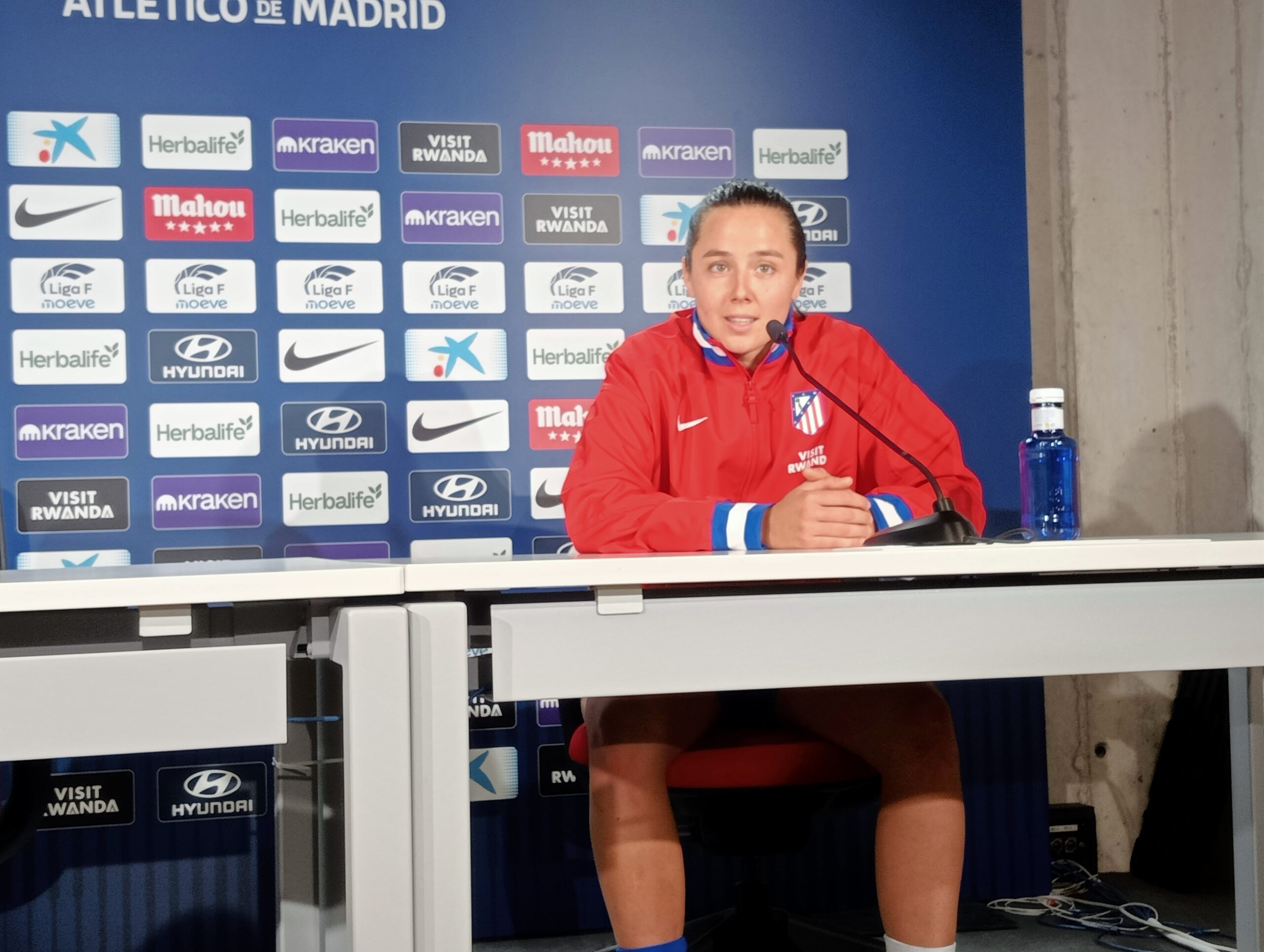Salían a la rueda de prensa el entrenador y una jugadora del Atlético de Madrid, Víctor Martín y Amaiur. En ella han analizado la victoria al Alhama por 4-0, goles de Fiamma, Gaby y doblete de Jensen que pone fin a la racha de tres partidos sin conocer la victoria.