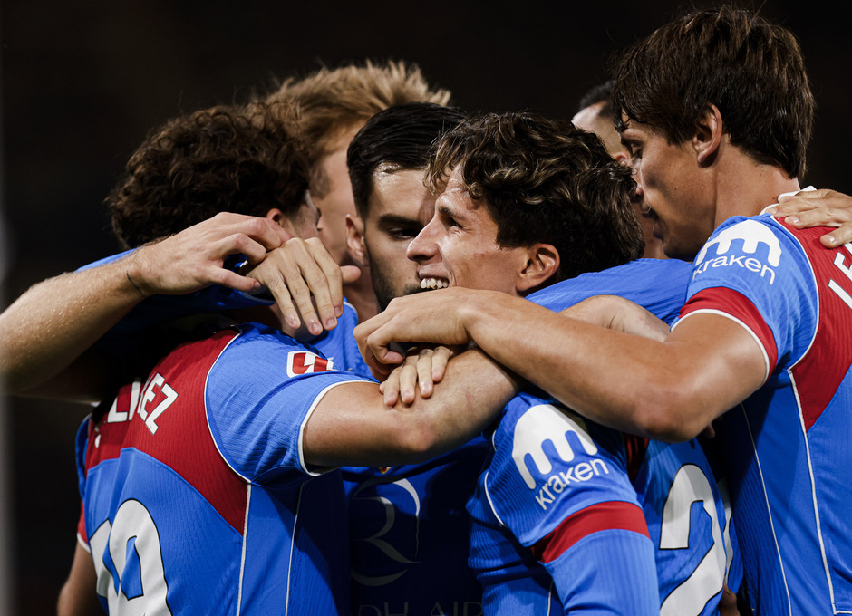 Once: Oblak en portería; Llorente, Giménez, Le Normand y Hancko en la defensa; Nico, Baena, Koke y Giuliano en el centro del campo; en ataque Julián y Sorloth.
