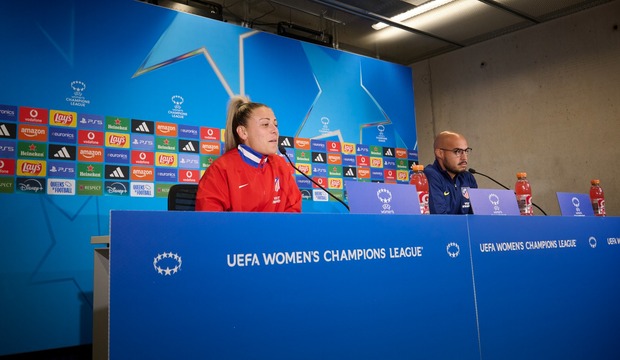 El Atlético de Madrid Femenino se enfrentará mañana a la Juventus en la Women´s Champions League, en el Centro Deportivo Alcalá de Henares. Hoy han salido en la rueda de prensa habitual previa al partido el entrenador, Víctor Martín y una jugadora rojiblanca, Carmen Menayo para analizar el partido.